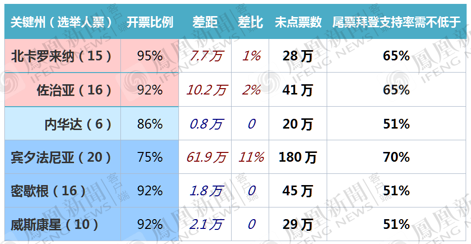 在北卡,拜登和特朗普的差距是7.7万张,目前还有28万张选票没有开出。