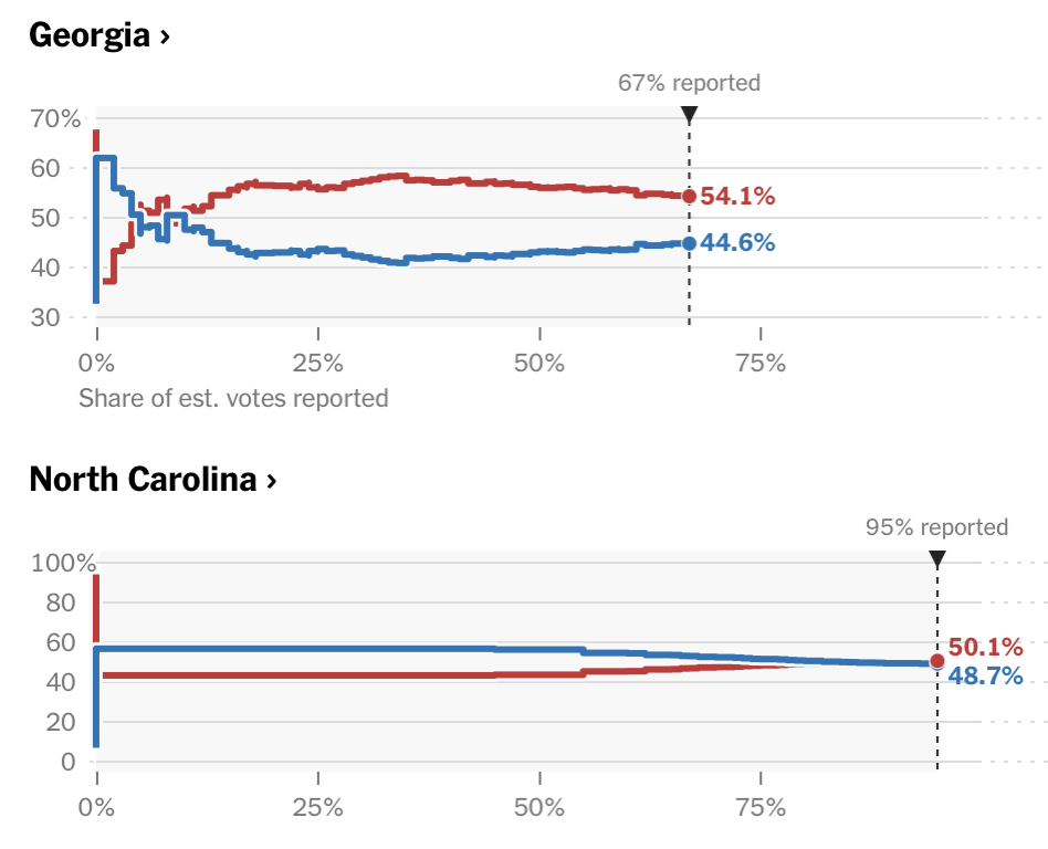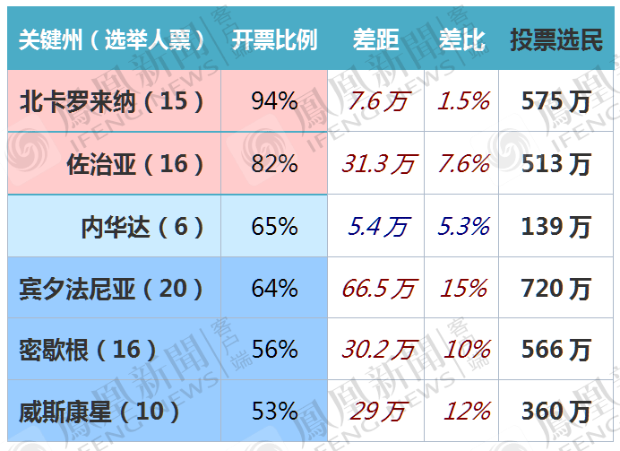 同样,目前暂停计票的北卡、佐治亚、内华达三州,北卡、佐治亚仍存逆转可能。