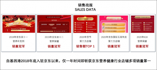 2019年农历年货节,GeneHarbor旗舰店取得营养健康品类产品冠军、1-2月京东国际销量战报中,GeneHarbor旗舰店是销量冠军、3月8日女神节GeneHarbor旗舰店是销量冠军、京东国际五周年庆活动以及最近一次的618电商活动中,基因港GeneHarbor京东旗舰店仍旧是冠军。