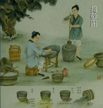 利用硬度高于七度的矿物,研捣为砂粒状,制成解玉砂。