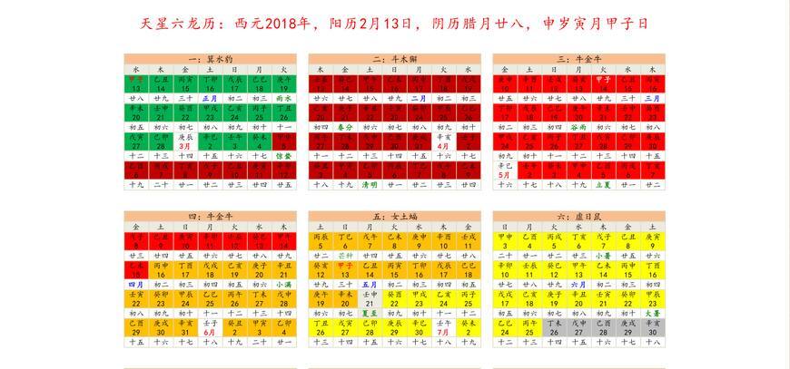 日算:以太阳视觉上过J2000黄经323°15′(如2018年2月13日0点后,为当前黄经323.25°)后,为太阳刚过虚宿之中起甲子日。古水族历法以三百六十日终了后,约五日过年日不计干支,再以猴宿昏见者起甲子日。猴宿昏见者为戌时觜宿现于西方固定观测点,实际为太阳于戌时进入虚宿之中,此时北斗正下指。
