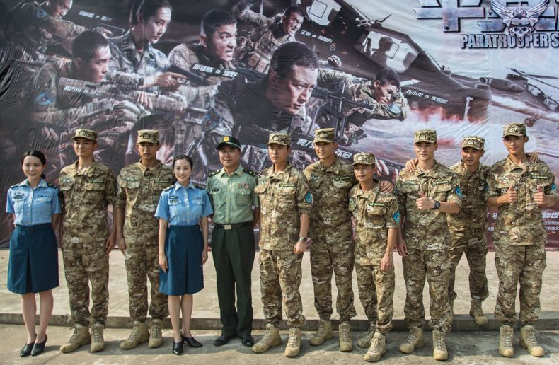 由中国人民解放军空军政治工作部电视艺术中心、万达影视传媒有限公司出品,幸福蓝海影视文化集团股份有限公司、芒果tv等多方联合出品, 张蠡执导、贾乃亮、李纯、张赫、庄小龙等人主演的聚焦空降兵部队特种兵题材的电视连续剧《伞兵魂》(原名《锅盖头》)日前在武汉召开了媒体见面会。活动当天,导演携一众主创悉数出席,媒体齐聚,场面盛大。功夫明星庄小龙实力还原电视剧中造型,一身迷彩军装强势吸睛。