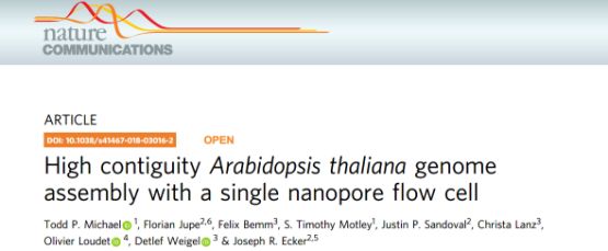 Michael T P, Jupe F, Bemm F, et al. High contiguity Arabidopsis thaliana genome assembly with a single nanopore flow cell[J]. Nature Communications, 2018, 9(1).
