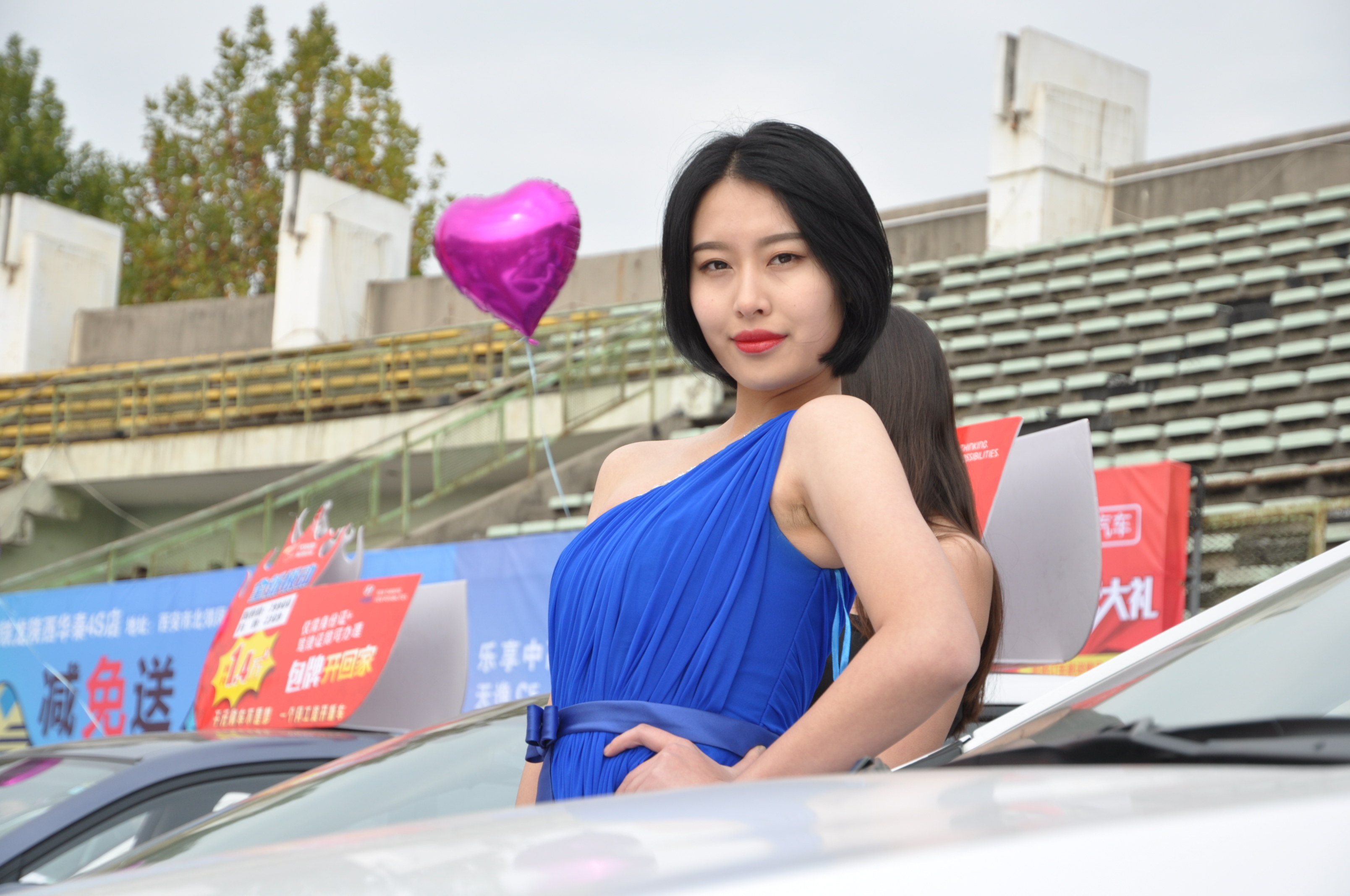 2017年11月11日,在西安市体育场举办的一个室外露天车展上,青春靓丽的车模穿着吊带和抹胸服装在寒冬中走秀,美丽“冻人”,吸引着路人的围观。