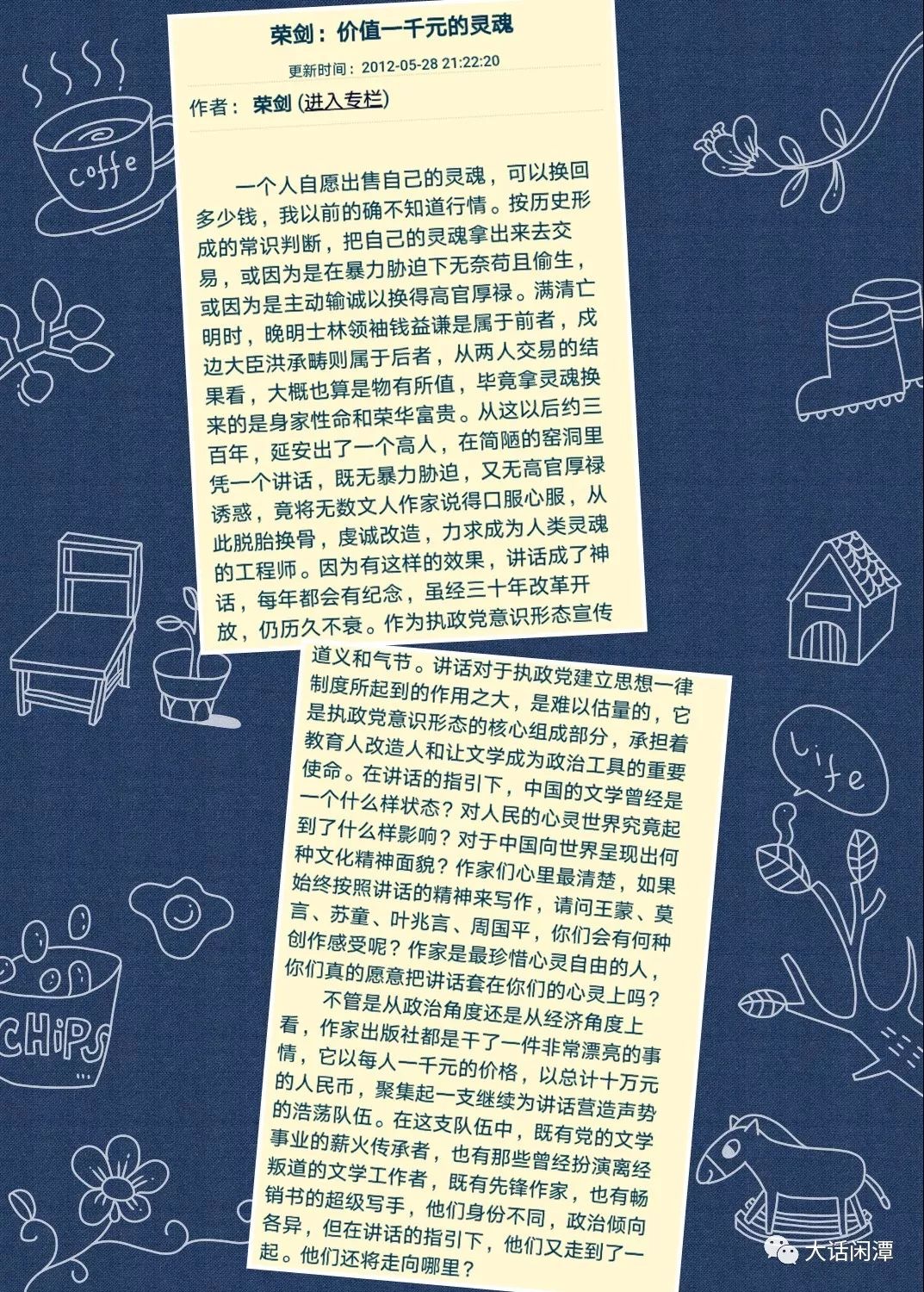 我的每篇文章出来,评论家苏小玲先生总是及时发表评论,算是对我文章的二度创作和提升,这次他又发表了长篇评论,虽然对我多有谬奖,但他表达了我们的共同看法:必须对文人的荒谬和无耻说不。我引述如下,算是本文的小结。