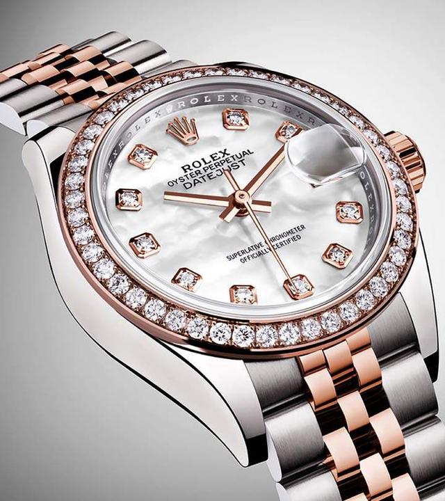 近年来,玫瑰金在珠宝市场已经稳固地发展,并成为全球女性的优雅金属。Lady-Datejust 28采用18克拉Everose黄金制成,饰有钻石,是现代千禧女性的腕表。镶嵌有钻石和星形小时标记的巧克力表盘表圈为这款经典款增添了一丝不同寻常的元素