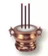 (4) 用左手上香,三炷香要插直、插平,间隔不过一寸宽,以表示“寸”(诚)心。