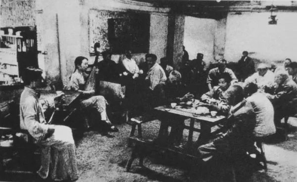 以汉口为例。这个城市借口岸通商之便,早在19世纪,就有女性出入于以往只有男人才能光顾的茶馆、戏院。在当时汉口最大的茶馆聚集地——后湖,她们时常结伴漫游,走累了便会到茶馆小憩片刻,并不理会这男性世界里投射来的目光——“后湖时有妇女结伴闲步,倦即愒坐茶寮,呼烟唤茗”;“弦歌喧耳,士女杂坐”(范锴:《汉口丛谈》)。另有一首《汉口竹枝词》则以更宽容和赞赏的口吻写道:“游观士女纷如织,茶坊无日无笙歌”。茶馆提供的演出与娱乐活动,是女子流连其中的主要原因之一,叶调元的《汉口竹枝词》中记:“望湖泉裹听笙歌,半是衣冠半绮罗。歇着数乘空轿子,惹他门口聚人多”,说明望湖泉茶楼里的女茶客,占据了茶客总数的一半。