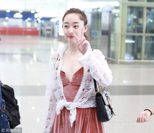 蒋梦婕蕾丝罩衫配吊带裙现身机场,这样的搭配我还以为她是去坐蒸汽火车的。