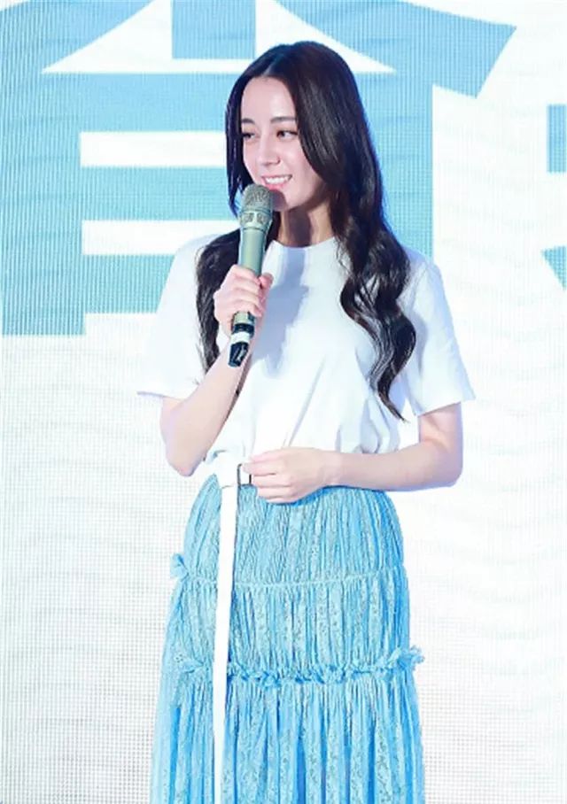 6月12日,迪丽热巴出席某品牌活动,身穿简单白T,搭配蓝色不规则半身裙,犹如邻家妹妹般随便从床上拿了两件衣服套身上,就去开门拿外卖了。