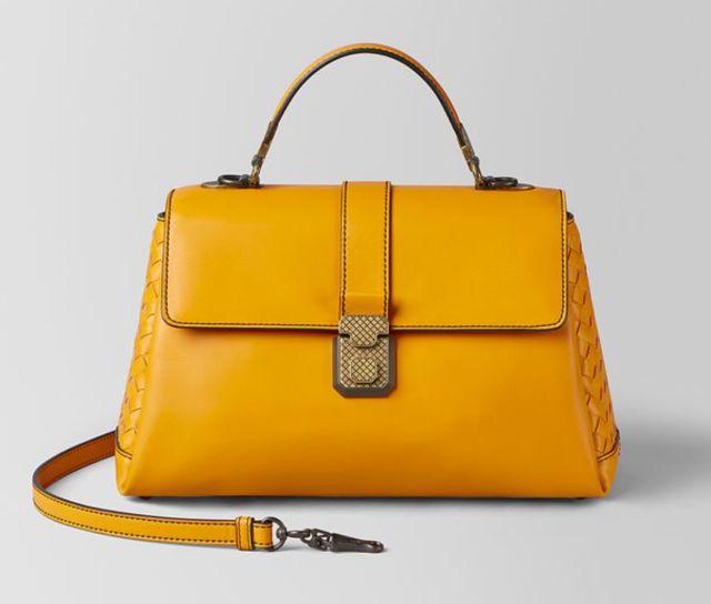 黄色的BV包包,为整体look增添了一抹亮色。
