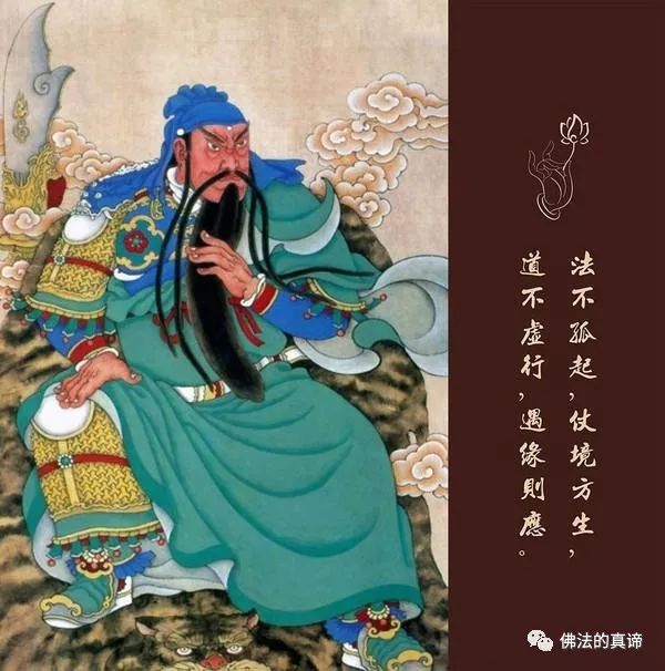 印光大师文钞赞云:“关帝在世则精忠贯日月,浩气塞天地,富贵不能淫,贫贱不能移,威武不能屈。没后神王玉泉山,隋文帝时,智者大师至玉泉,关帝特运神力,创建寺宇,又求授戒,以为菩提之本,兼愿拥护佛法。故天下丛林,皆谓之为伽蓝菩萨,而与韦驮菩萨,并镇山门。”