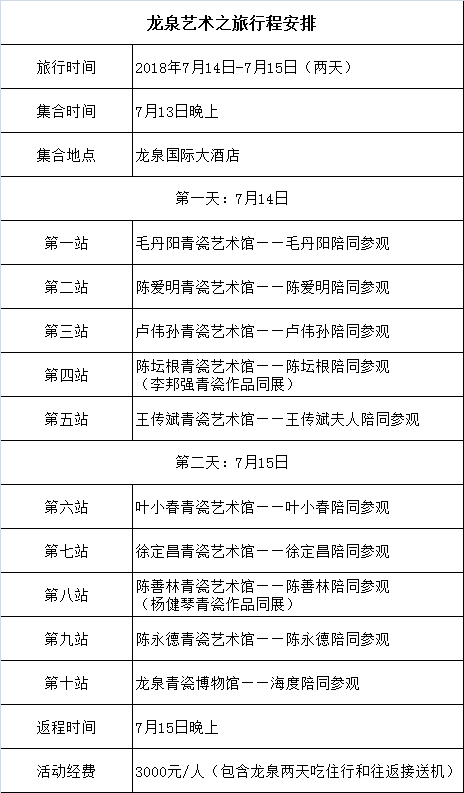 2018年7月14日~15日,海度艺术之旅邀您一同前往龙泉,感受那干净,古朴,宁静却包含诗意的灵魂,揭开这座青瓷之都的神秘面纱。