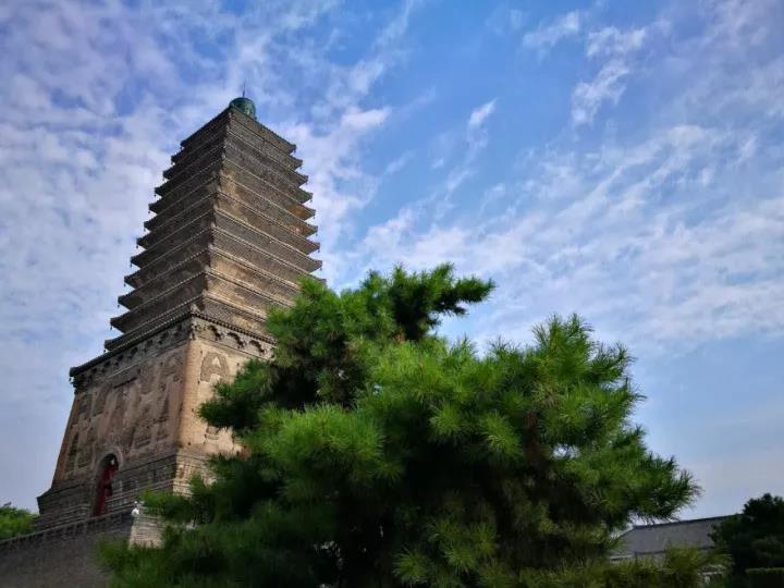 辽代重修并更名延昌寺塔,在密教僧的指导下修建成雕饰繁复的方形空心十三级密檐式砖塔。