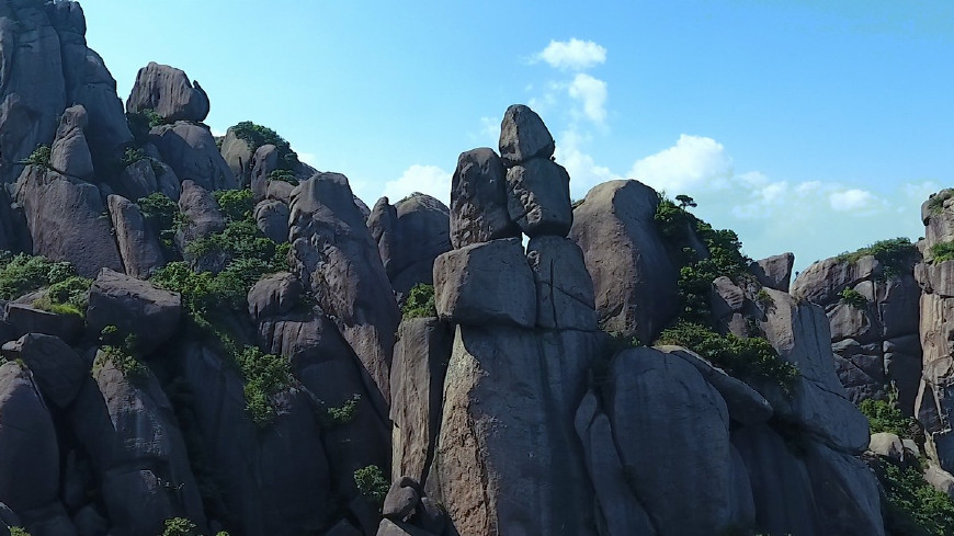 灵山西段是核心景区,乘缆车上五行栈道,目不暇接的是“大珠小珠落玉盘”的垒石,或立于奇峰之巅,或深情相望,飘然悬立。这里的山石多断层,巨石会出现刀削斧劈的深裂缝。这里的山石,光芒夺目,花岗岩表面的水晶颗粒,在阳光照耀下闪闪发光。这里的山石,万种风情,状鱼,状龟,状象.....
