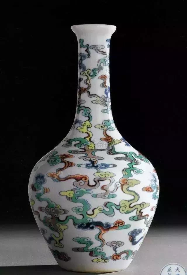 清雍正 斗彩 五色祥云图长颈撇口胆瓶