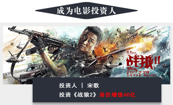 宋歌投资拍摄了《战狼2》身价增加亿元,四川的投资者刘立鸣投资《红海行动》8000万元,净赚1.2亿........