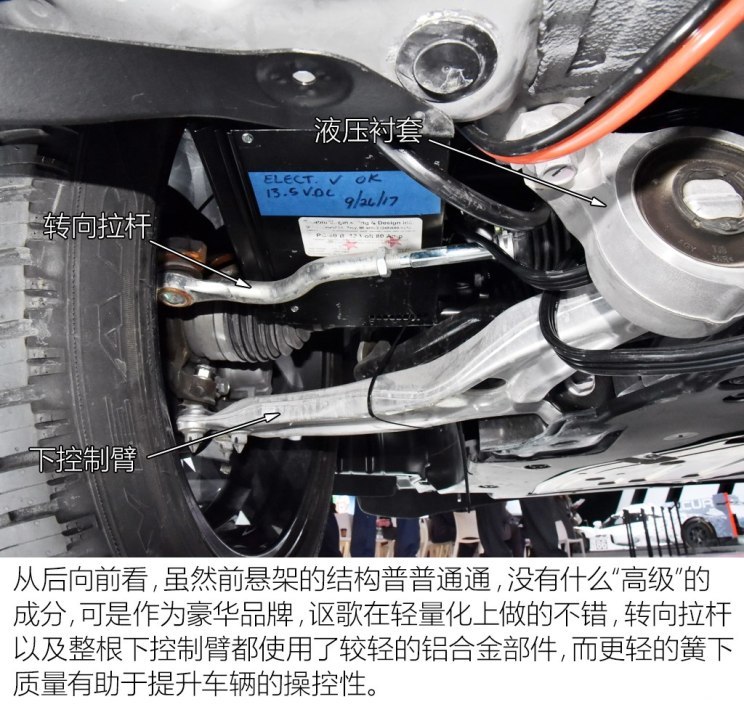 从前悬架来看,虽然RDX使用的麦弗逊式结构较为常见,也比较简单,可是其在轻量化方面做得较好,铸铝合金零部件降低了簧下质量,理论上对提升车辆的操控性有着一定的帮助。此外,下控制臂与车身的连接处采用了液压衬套,相比于橡胶衬套来说理论上的滤振效果也会更好,其成本也更高。总的来看全新一代RDX的前悬架做工用料符合其车型及品牌的定位。