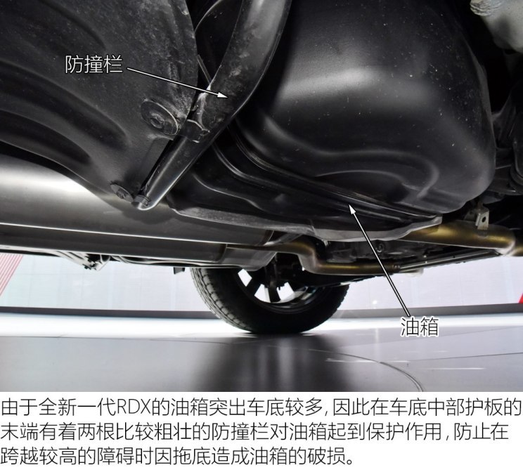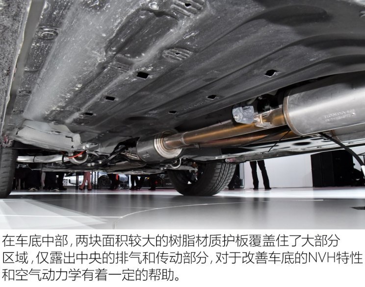 看过了前后悬架的结构,最后我们再来看看全新一代RDX在底盘防护方面做的如何。有些人或许并不在意车辆底部的平整度,但作为豪华品牌来说,这些看不到的细节正是其相比普通品牌来说做的更好的地方之一。