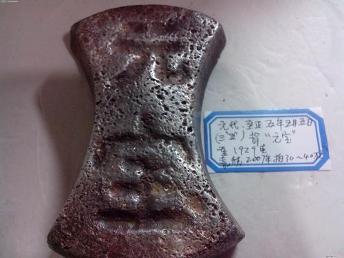 第二种是中锭,多为锤形,重约10两,又称小元宝;