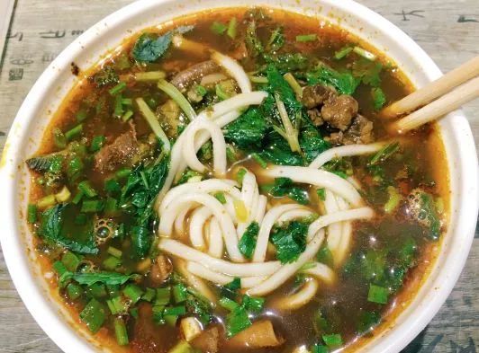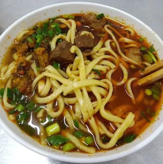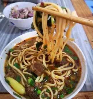 一碗劲道的麦黄色面条,一大勺喷香的大酥牛肉,还有浓浓的汤,虽然看上去很重口味,但吃起来刚刚好。
