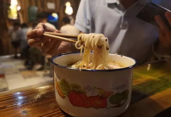 这家店卖的不是小吃,而是一种情怀。洋瓷口缸装的米线,感觉像是回到了小时候,味道很不错,浓浓的汤汁。
