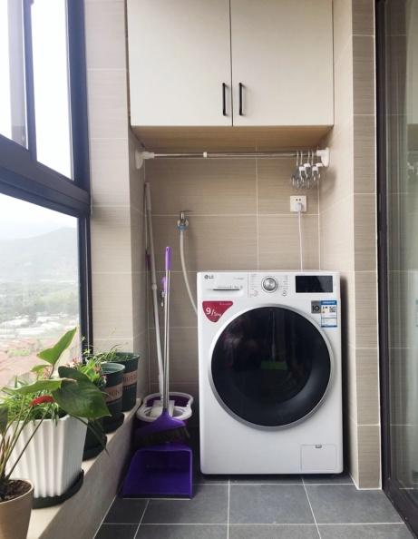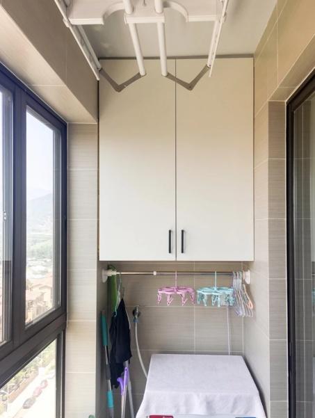 顶部有升降晾衣杆,洗衣晾晒储物的都很方便。