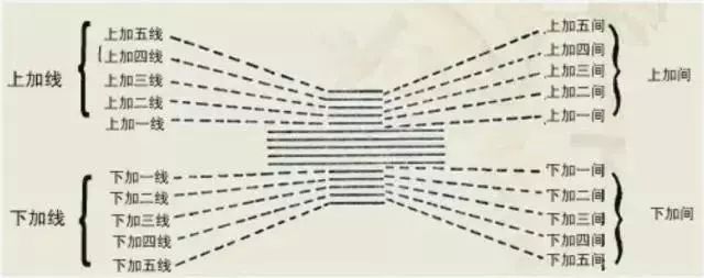 五线谱,顾名思义是由五条平行线组成的,当然还包括每相邻两条平行线之间的“间”。