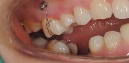 我们在改变牙齿前突,尤其是伴有面型前突的患者,拔牙的间隙,一般是想通过前牙的最大内收,来把缝隙关闭的,从而改变面型,不希望后牙前移来占据拔牙间隙,这种情况支抗钉就发挥很大的作用了,从支抗钉上挂一个橡皮圈,来牵引前牙内收。