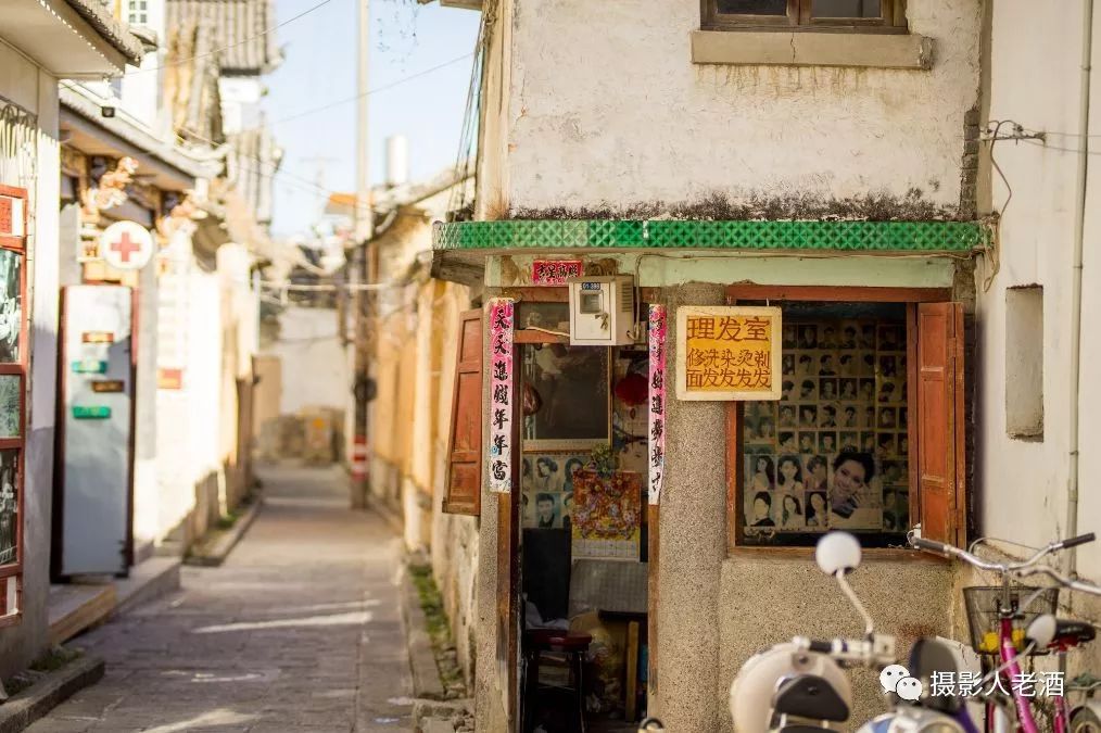 在一个小巷子里,看到一个古老的理发室,上面的招牌表明这家理发室应该是上个世纪就已经开业。到现在少说也有几十年的历史,现在还依然营业着,这大概就是喜洲古镇独有的历史人文味道吧。