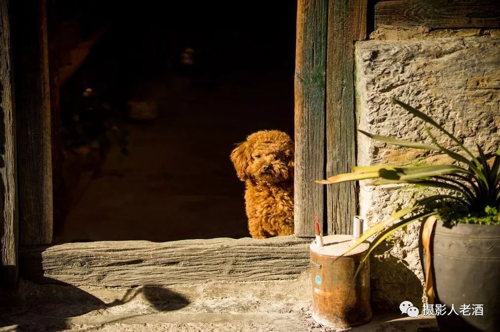 喜洲的动物似乎也像人一样,慵懒悠闲,一只小狗站在一个古老的木头门框里晒着太阳。
