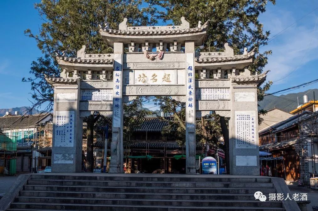 镇子中心的题名坊便算是喜洲的标志性建筑了,上面写着喜洲历史上的一些名人,同时也述说着这座不大的古镇在漫漫历史长河中走过的岁月。