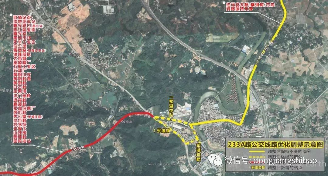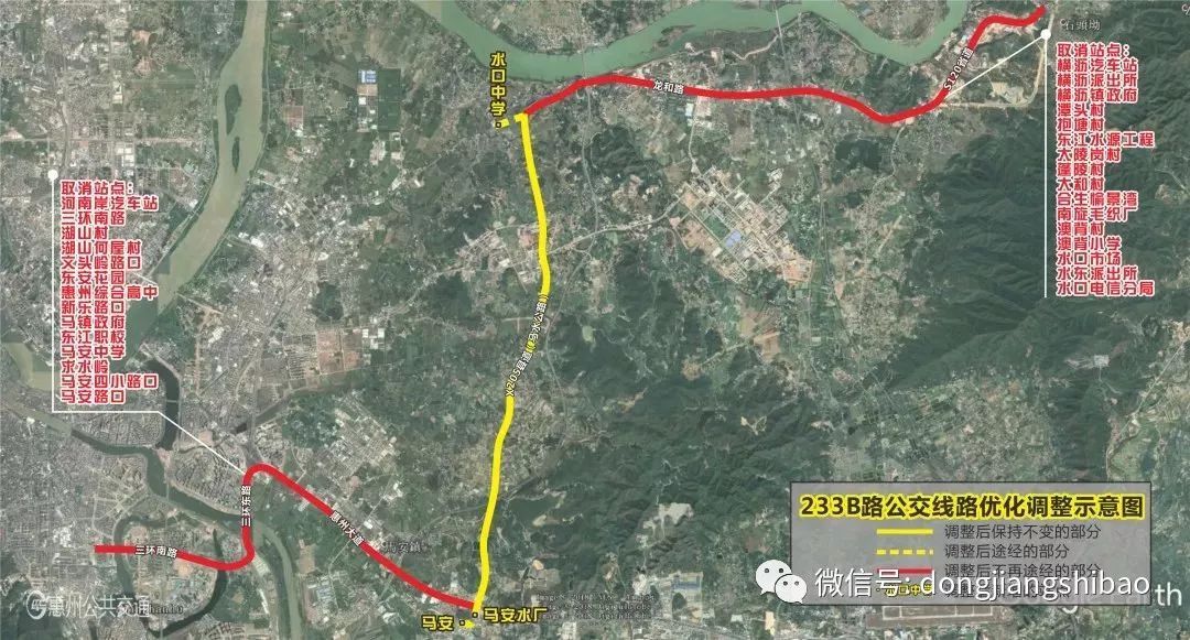 233A路调整后:首末站为永湖老桥至马安大桥,经叶挺大道、S357省道至马安大桥行驶,新增永湖老桥、永湖镇2个站点,需前往市区、仲恺方向的市民可在永湖镇换乘其他公交线路。