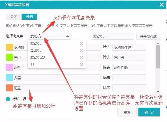 支持保存多组高亮词设置