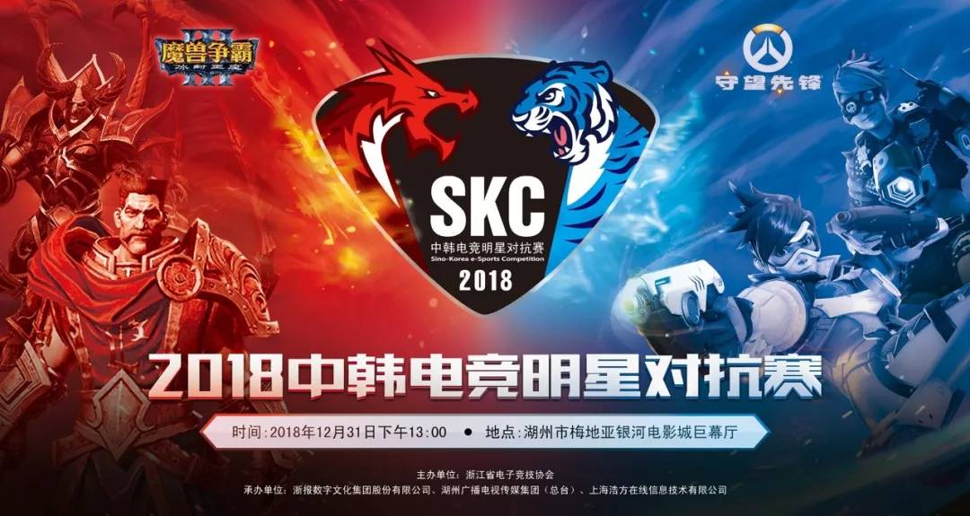 由浙江省电子竞技协会主办的SKC中韩电竞明星对抗赛将于2018年12月31日,在湖州市梅地亚银河电影城进行。