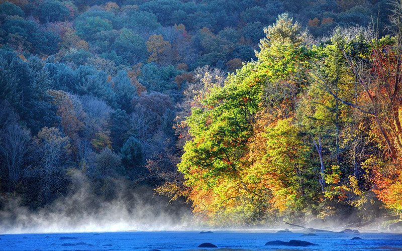 另一处风景绝美的新英格兰红叶景区是位于西康涅狄格州的利奇菲尔德山,坐落在伯克夏山脚下。顺着7号公路在新米尔福德与康沃尔之间沿胡萨托尼克河前行,将看到一些枫树、橡树、山杨树、山毛榉和桦树,迸发出温暖的红、黄、橙。