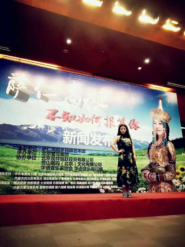 萨仁高娃多民族艺术团,在北京举办影视演员萨仁高娃的《不知如何报答你》歌曲的新媒发布会!萨仁高娃,1962年7月14日出生于内蒙古集宁,影视演员。曾是内蒙乌盟歌舞团的舞蹈演员。作品有《成吉思汗》、《开创盛世》、《公关小姐》等。