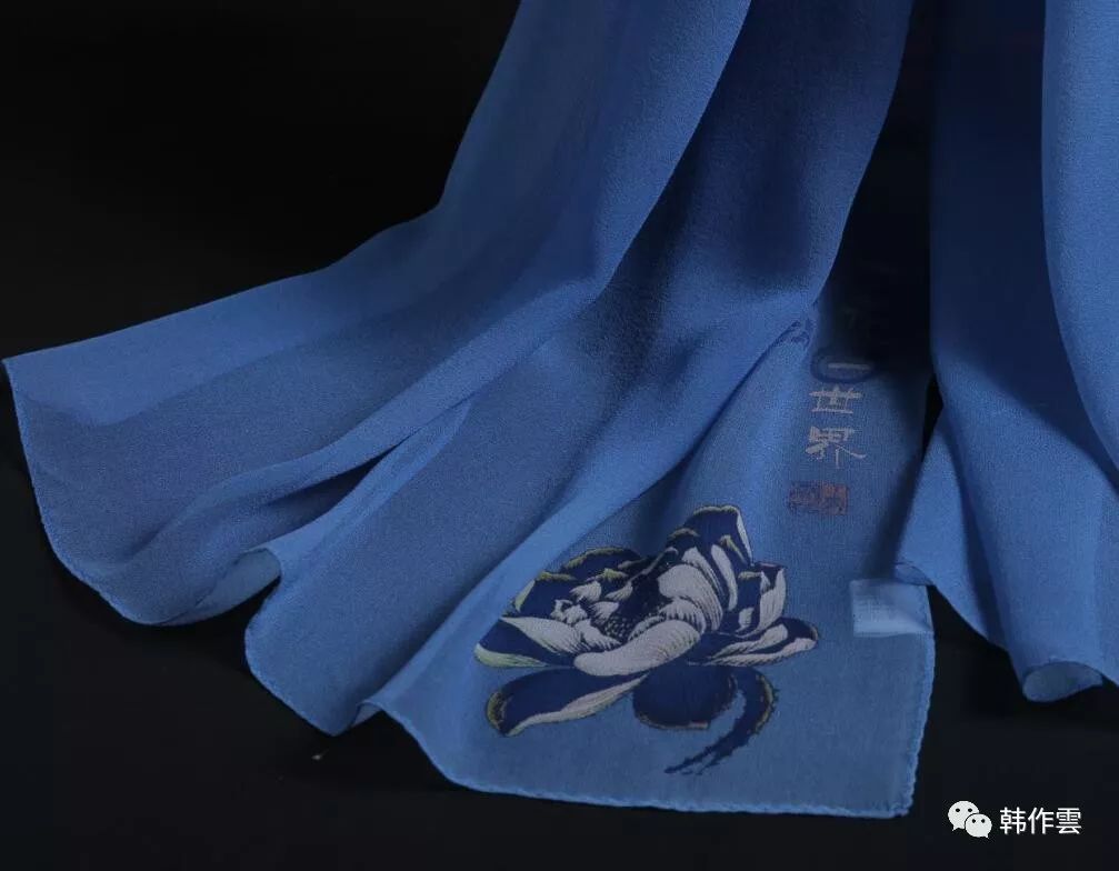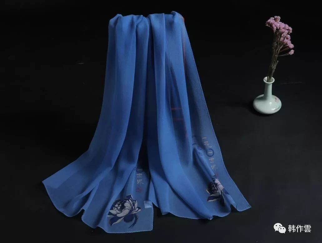 韩作雲丝巾品牌特推出一款“一花一世界,一叶一菩提”禅意艺术丝巾,此款围巾采用桑蚕丝乔其纱为面料,触肤轻柔光洁,面料细腻有光泽。