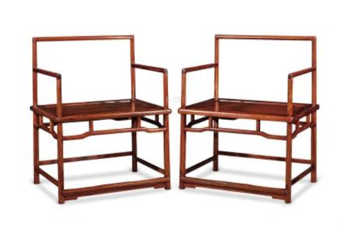 扶手椅有两种形制,其一是南官帽椅,北方地区称为玫瑰椅,南方地区称为文椅,形制矮小,后背和扶手与椅座垂直;其二是四出头官帽椅,官帽椅是以其造型类似古代官员的帽子而得名。
