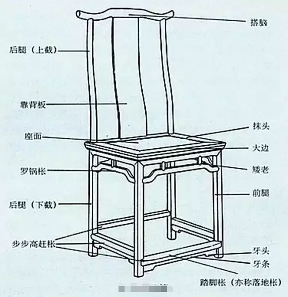 灯挂椅:靠背椅式样之一,其搭脑的两端挑出,很像江南农村竹制油盏灯的提梁而得名。