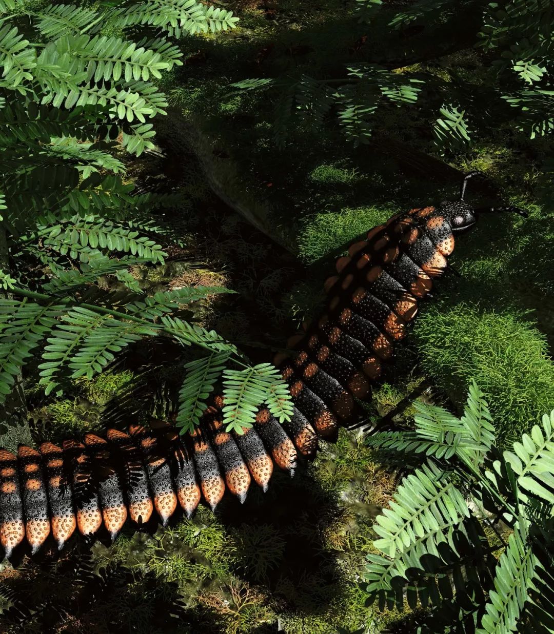 艺术复原图中穿过石炭纪森林的古马陆