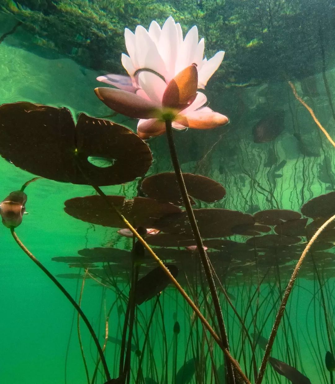 湖面上的睡莲,其组织结构和生长方式与世界上第一朵花相似