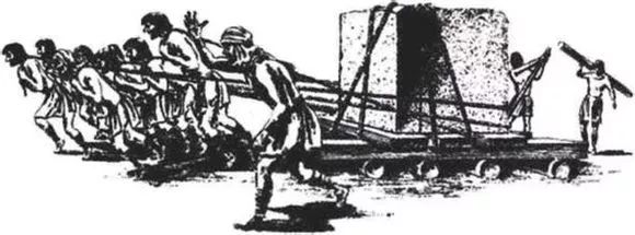 古埃及修金字塔,为了减少巨石的摩擦力,人们在地上放置圆木,以减少摩擦力,用人把巨石拖到工地。