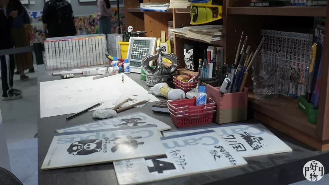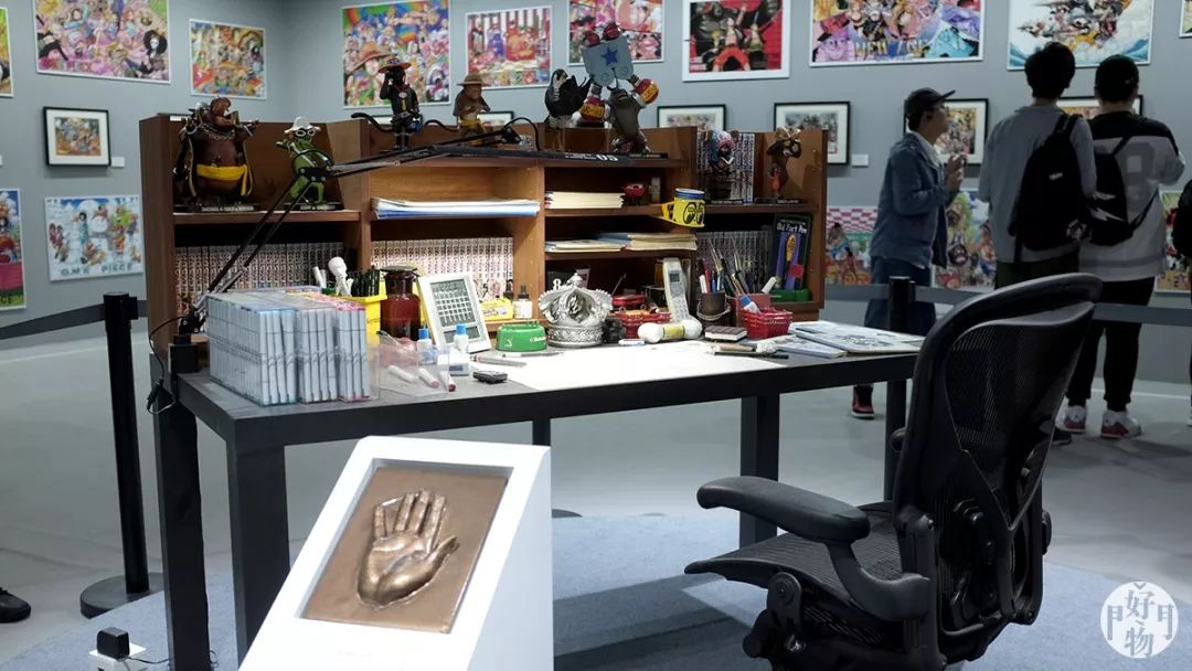 现场1:1等比真实还原尾田的工作台,连载21年的海上冒险就是在这样的环境绘制的。尾田的工作台平时就是这么整洁,我就不吐槽某些按年更新的漫画家桌面无法还原出来了......