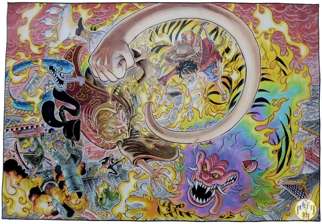 为纪念《ONE PIECE》连载20周年,于2017年在京都举办了“ONE PIECE ART NUE”大觉寺《魔兽与公主与誓言之花》''展览,将OP与日本浮世绘的神怪结合,再创作出东瀛情调的古典版航海王,一时好评如潮。此作品也是在日本京都大觉寺展出以后,首次在国外亮相。你能认出浮世绘版的各位成员吗?