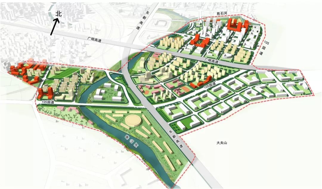 该片区共划分为7大组团,总占地面积达3154.71万㎡。