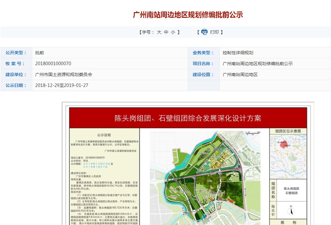 今日,市国规委网站公布《广州南站周边地区规划修编批前公示》。