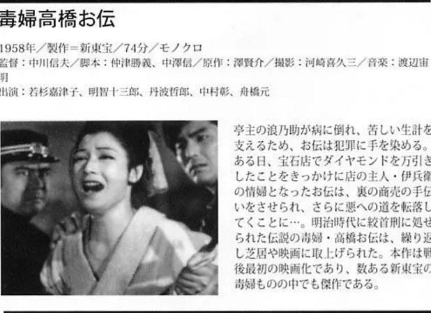 之后,在1912年,这个事情也被拍成了电影《高桥阿传》,这样题材的大约拍了十几部。直到现在,高桥阿传一直都是一个“毒妇”的形象。可是事实真的如此吗?若真是“毒妇”,也不至于临死之前,呼喊的都是自己心爱人的名字。