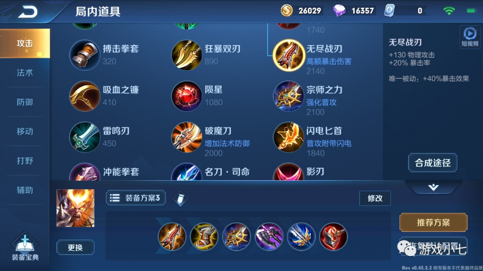 暴击英雄必出的“无尽战刃”也被调整了,物理攻击120点加到130点,不过暴击效果从50%降到了40%啦,感觉很多需要这把武器暴击的英雄都集体被削了,准备改完法师了吗?别急下面法师装备也调整了。