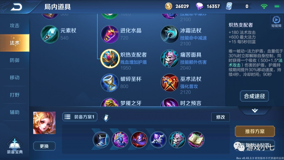 炽热支配者这件装备也很冷门,很少看到法师英雄出,其中带有的“法盾”抵挡法术伤害,这个盾的基础值加到了500点,重点是,新增了一个效果,自身血量低于30%出发护盾,直接解除自身控制效果。